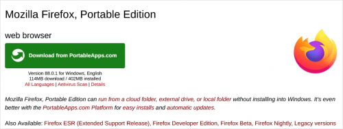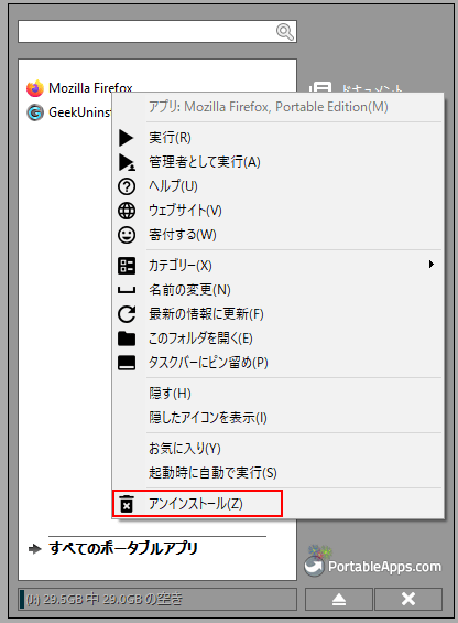 例として、Internetのカテゴリーにある「Mozilla Firefox, Portable Edition」をインストールしてみます。