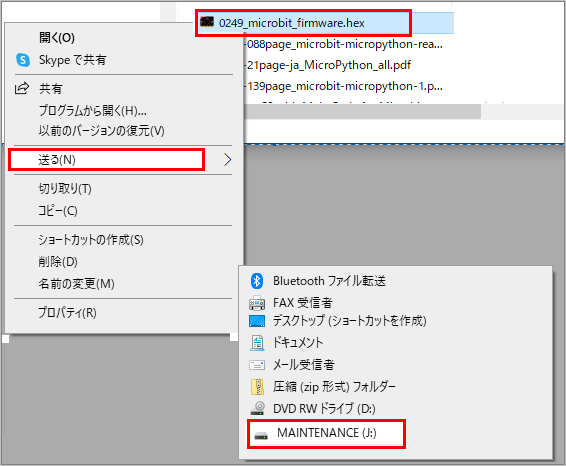 2021.08.20時点では、V1のファイル名は「0249_microbit_firmware.hex」、V2のファイル名は「0255_kl27z_microbit_0x8000.hex」です。
